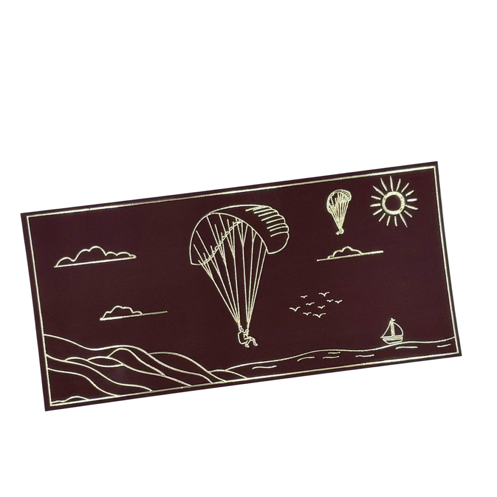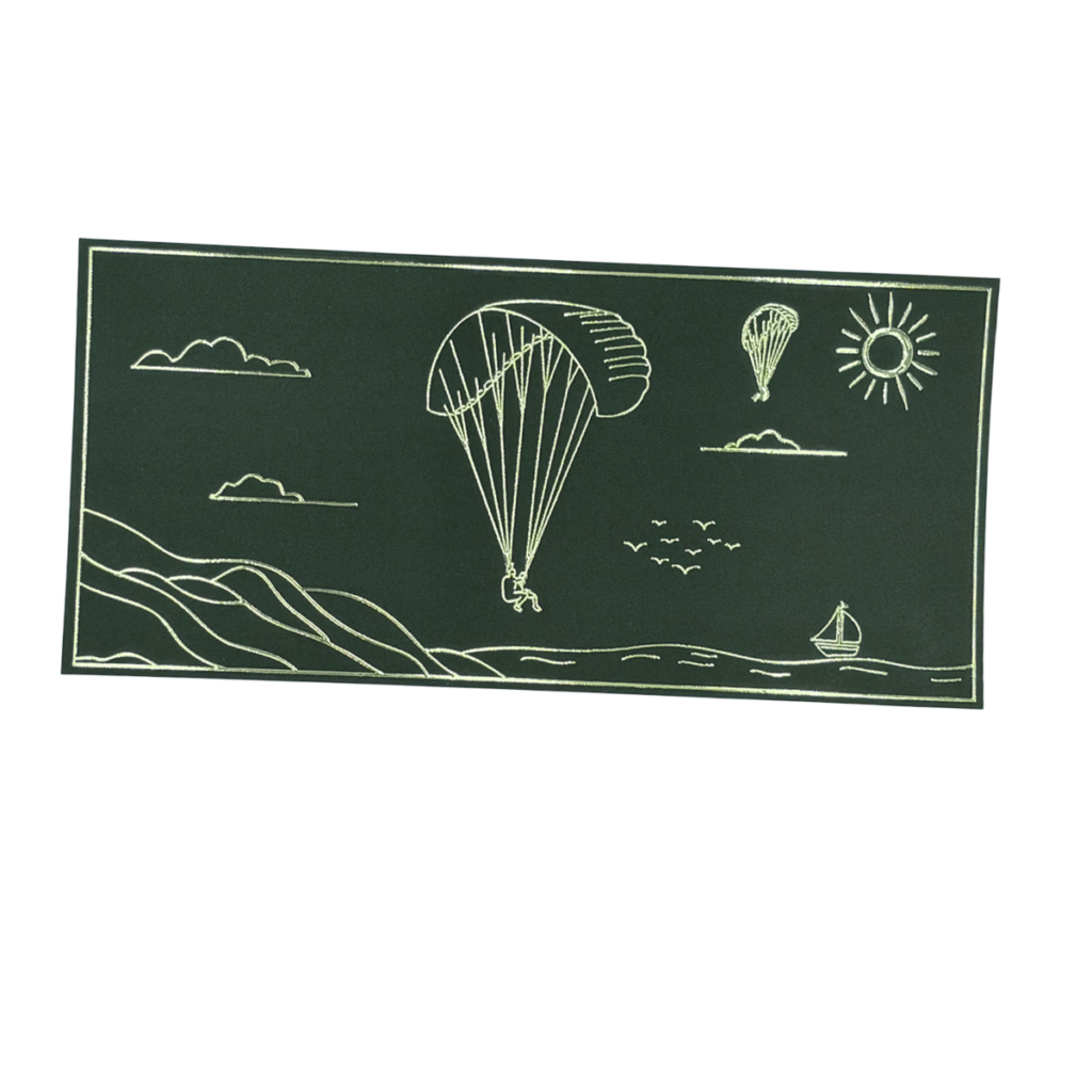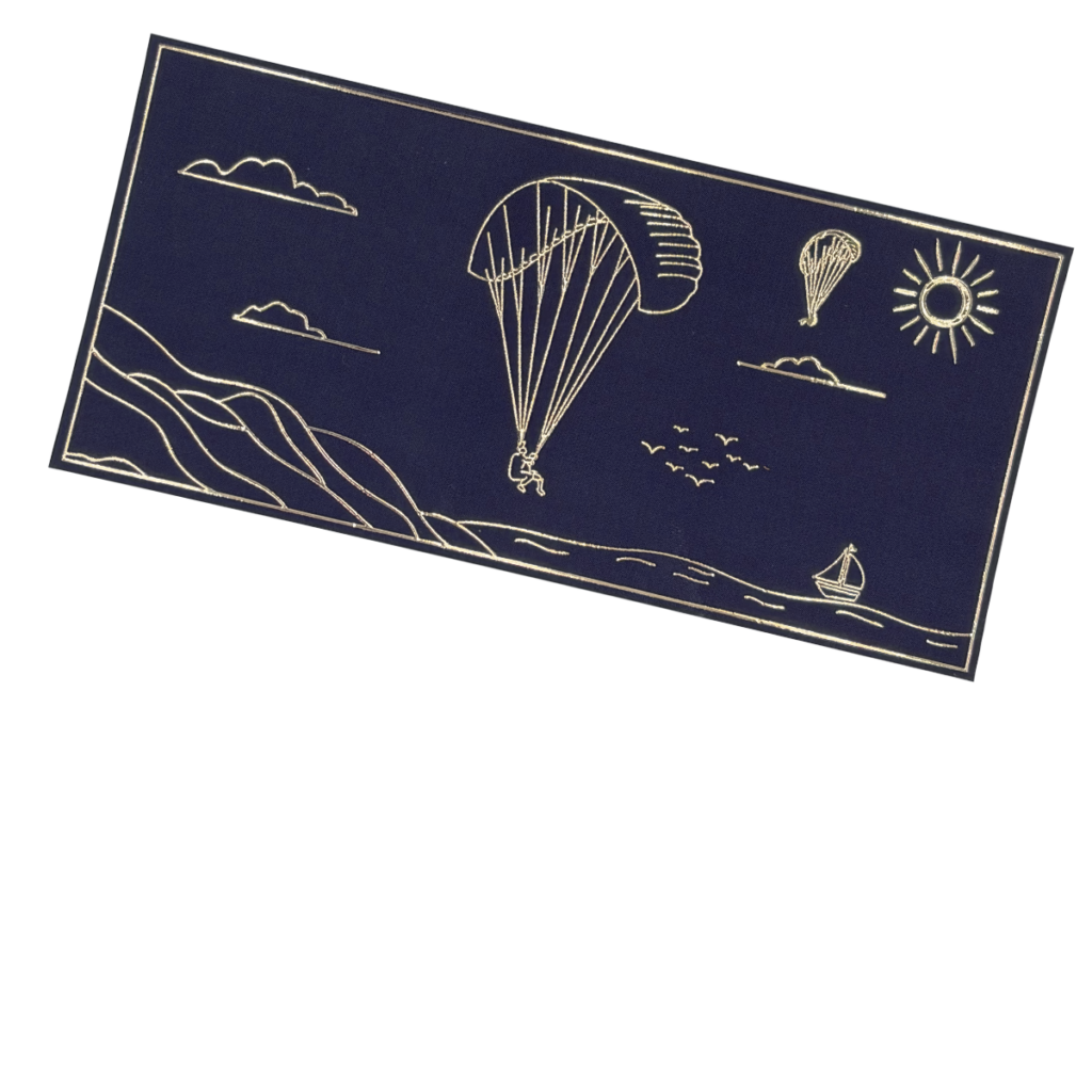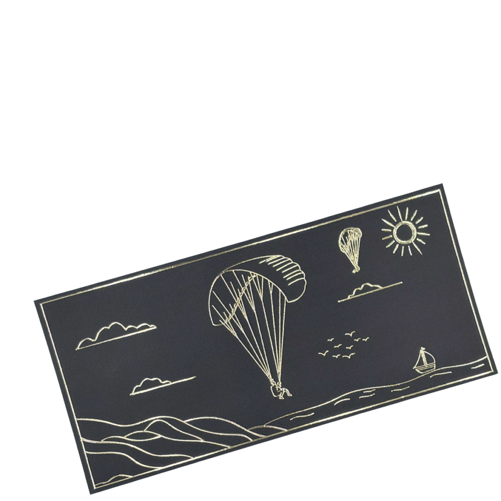 Notre carte cadeau arbore un dessin minimaliste en dorure, capturant l’instant du vol.