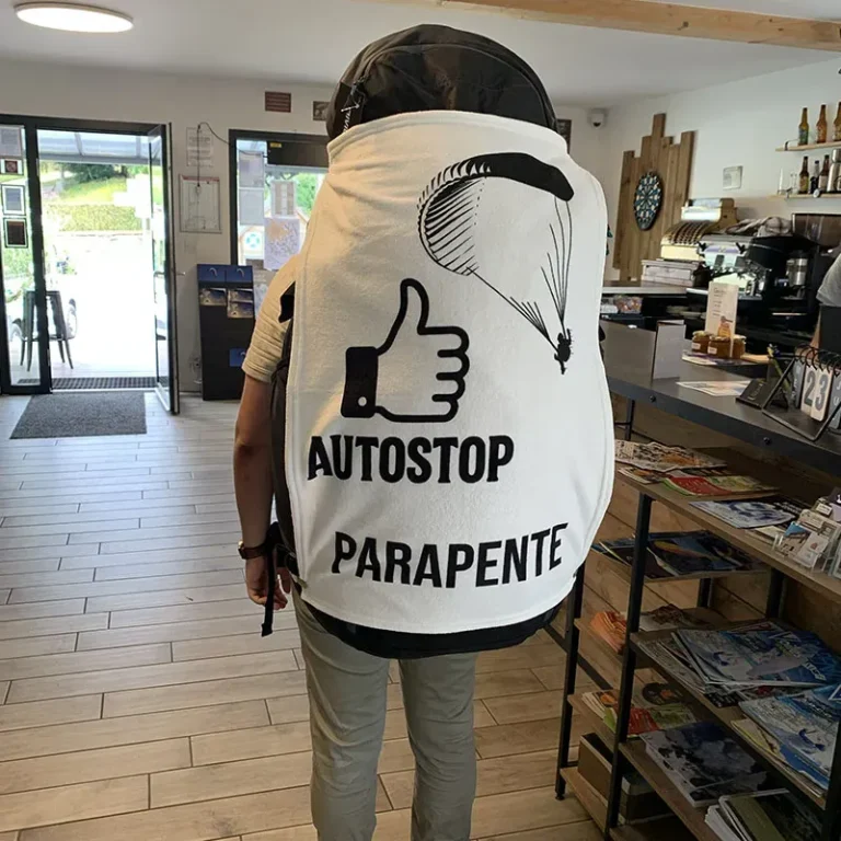 La serviette « AUTO STOP » répond à ce besoin concret : s’essuyer rapidement, puis rendre visible votre intention de faire du stop pour rentrer.